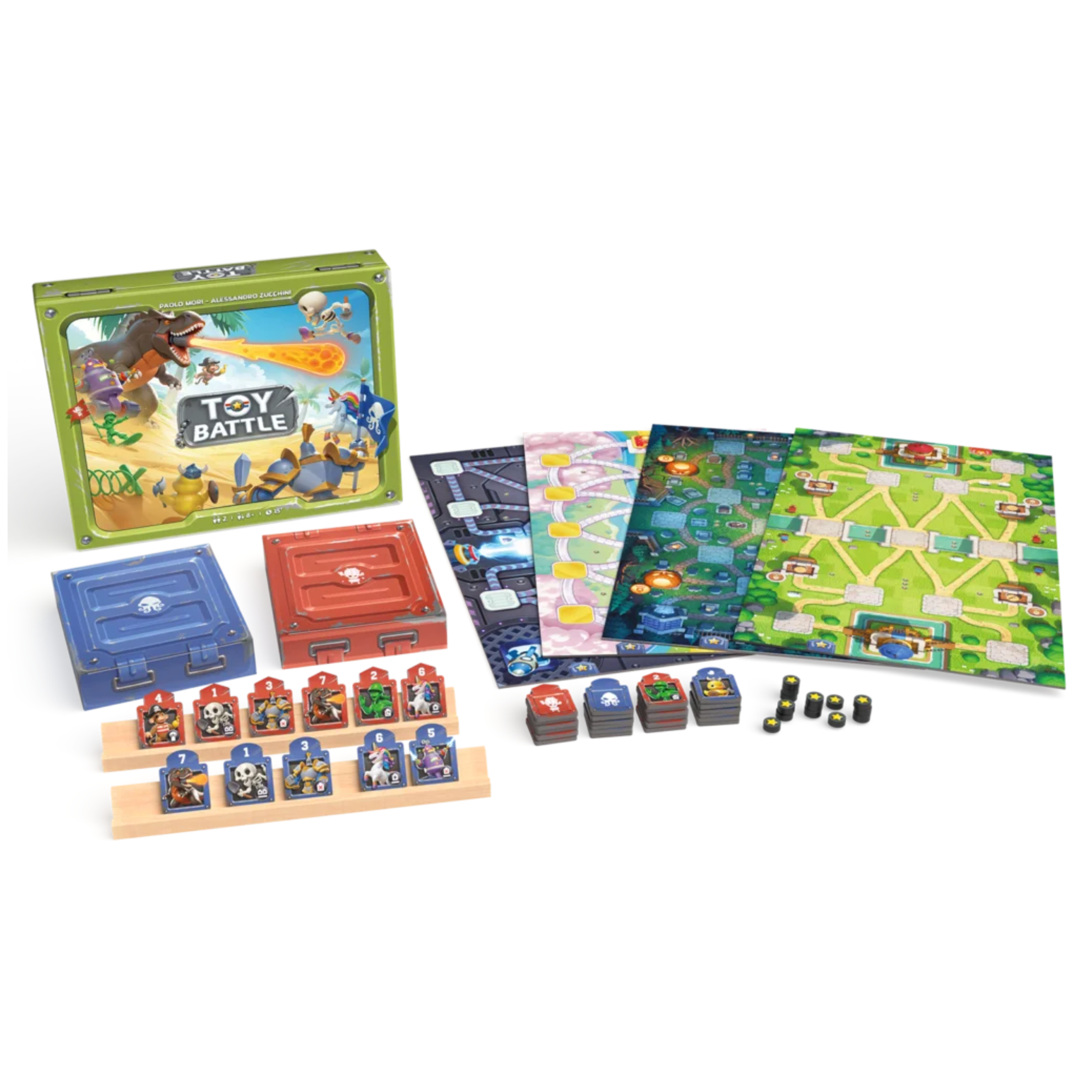 Creato dagli autori italiani Paolo Mori e Alessandro Zucchini, e pubblicato da Asmodee, Toy Battle è un duello strategico travestito da gioco tenero. Guidi un’armata di giocattoli in una battaglia testa a testa dove ogni mossa può ribaltare tutto. Non lasciarti ingannare dall’aspetto: dietro quei sorrisi in plastica si nasconde una sfida tesa, veloce e tattica, da veri strateghi.