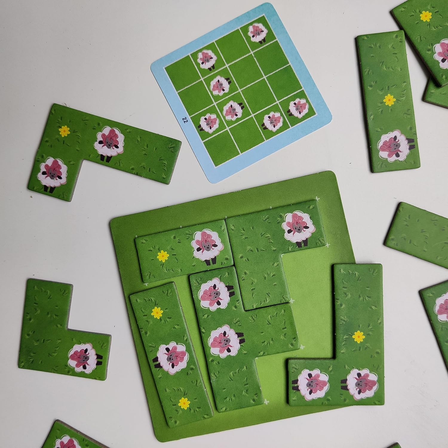 Woollie è un gioco da tavolo di logica in solitario, perfetto per chi ama le sfide rilassanti e simpatiche.