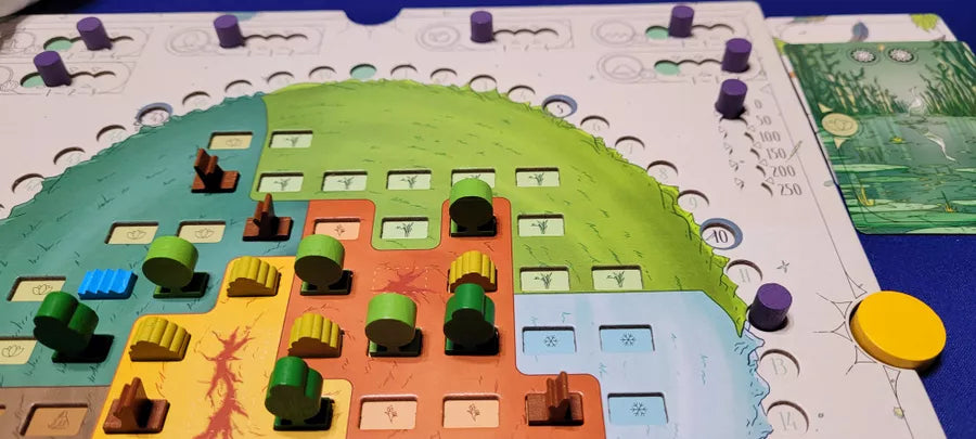 Durante ogni round, scegli una carta bioma che indica dove potrai piantare alberi e collocare elementi naturali.