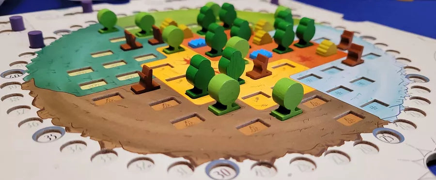 Alla fine di ogni round, si calcolano i punti luce: ogni albero adulto che riceve luce diretta (senza essere oscurato da un altro) ti dà punti. La posizione e la crescita vanno pianificate pensando all’orientamento del Sole nei turni futuri.