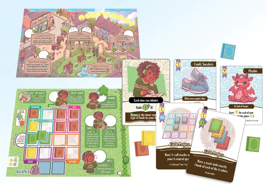 Nel corso di nove round, dovrai visitare luoghi del villaggio, raccogliere libri e organizzarli in modo ottimale all'interno di un appartamento sempre più affollato. Ogni stanza ha regole diverse e ogni pila ti permette di compiere azioni "ammira", che convertono l’ordine in punti vittoria ed energia.