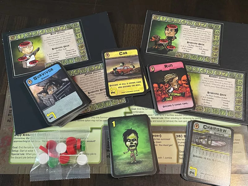 Ogni giocatore interpreta un sopravvissuto con abilità uniche e inizia la partita con un piccolo mazzo personale.