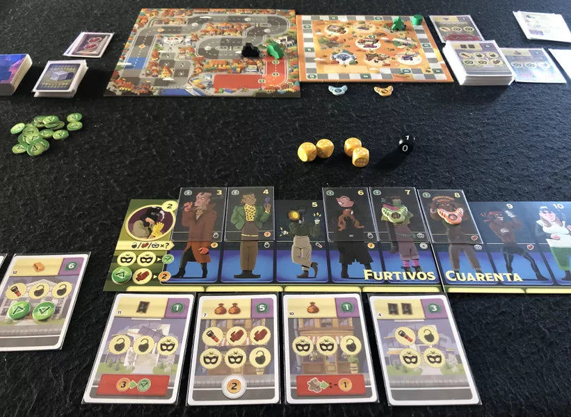 A ogni turno si lanciano 4 dadi: il giocatore attivo crea due coppie e attiva due membri della sua gang, mentre tutti gli altri possono usare una delle coppie per attivarne uno. Più colpi completi, più potenziamenti ottieni... ma occhio alla polizia! Se non tieni il passo, rischi di perdere tutto il bottino lungo il percorso.