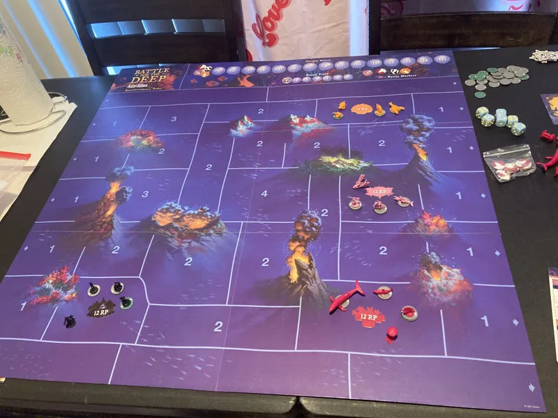 La squadra che riesce a dominare le profondità oceaniche e a controllare le aree più importanti del tabellone sarà proclamata vincitrice. Battle for the Deep è un gioco da tavolo strategico e competitivo che unisce diplomazia, tattica e scontri epici negli abissi.
