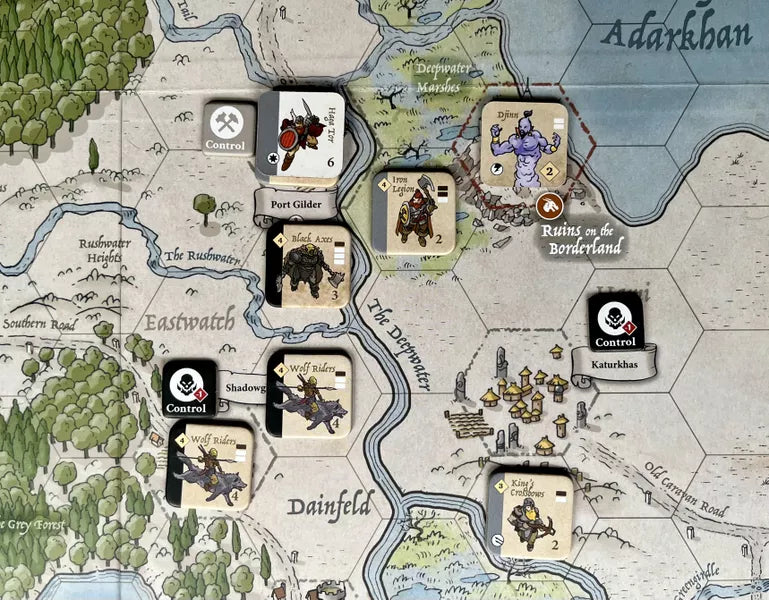 Ogni giocatore comanda uno dei sei regni di Kalar, spostando eserciti e eroi su mappe esagonali immense. Il tuo obiettivo: espandere i confini, difendere le terre e contrastare i piani oscuri della Strega Regina.