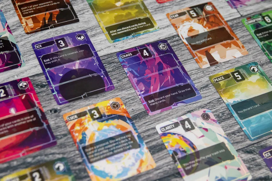 Il cuore di Compile: Main 2 è la costruzione modulare di protocolli: ogni giocatore seleziona tre routine e tenta di completarle prima dell’altro, sfruttando interazioni, effetti e manipolazioni logiche. Ogni carta rappresenta una linea di codice, un frammento di pensiero che genera azione o interferenza.