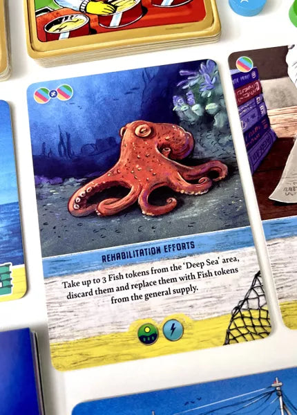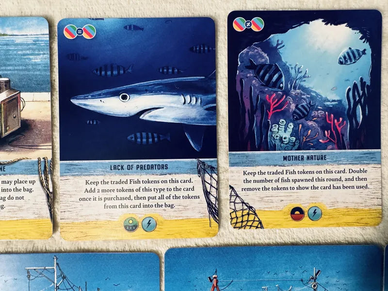 2 Ogni turno peschi gettoni da un sacchetto che rappresenta il mare, decidendo quali pesci portare alla tua azienda e quali lasciare per favorire la riproduzione.