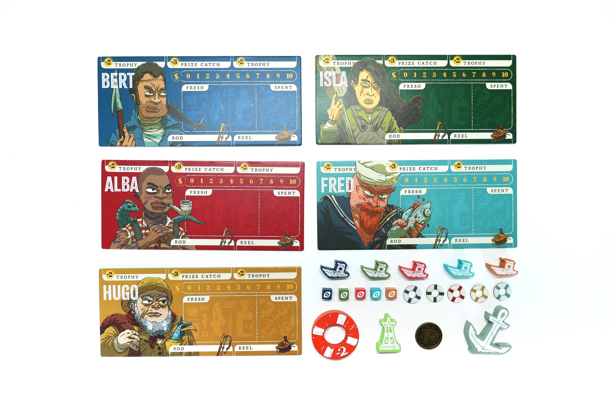 5 Alla fine della partita, chi ha il maggior numero di punti vince, ma attenzione: il giocatore con più punti Regret perde il suo pesce montato più prezioso, potenzialmente ribaltando l’esito della partita.