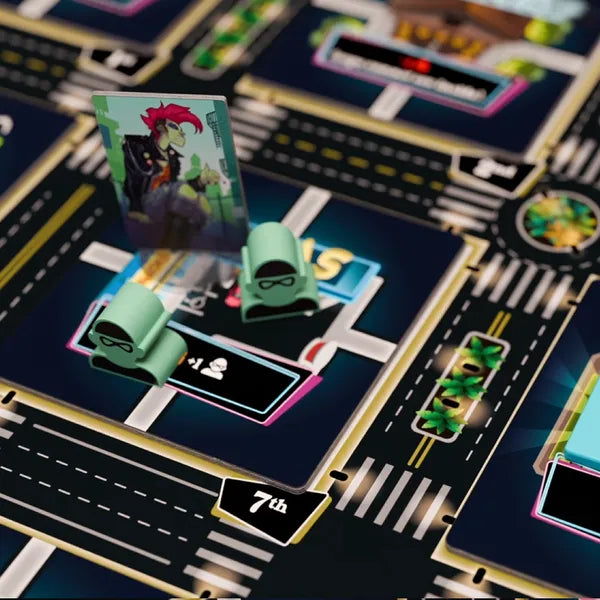 Ogni turno è una danza tra rischio e ricompensa: costruisci la tua rete, investi nel momento giusto, tradisci al momento perfetto. E quando la città si illumina di blu e rosso, scappa… o diventa leggenda.