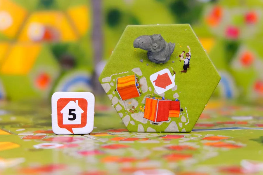L’obiettivo è semplice ma coinvolgente: piazzare tessere esagonali per creare fiumi, binari, foreste e villaggi, cercando di completare obiettivi specifici della popolazione e massimizzare il punteggio con aree chiuse da bandiere.