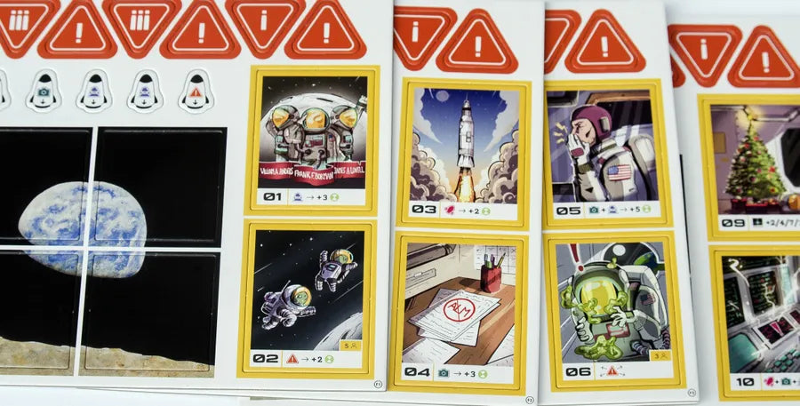 Nel cuore di Earthrise c’è un sistema di gestione tattica del rischio: i giocatori bilanciano le proprie azioni per raccogliere carte Missione e token Manovra, mentre cercano di evitare gli Alert che possono compromettere l’intera spedizione.