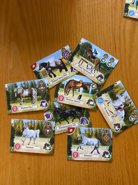 Devi costruire le tue scuderie, allevare campioni e attirare i migliori addestratori: ogni carta è una scelta tra il sogno e la rovina. Ogni cavallo ha una storia, un talento, un destino — ma solo chi saprà investire con intuito e coraggio potrà diventare leggenda.