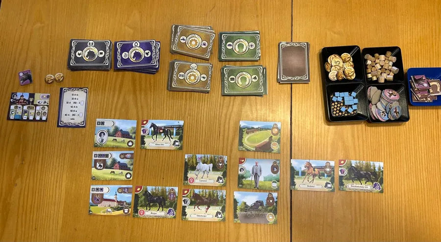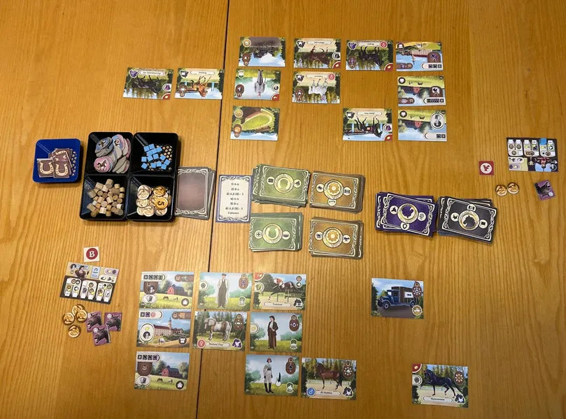 Acquista cavalli leggendari, assumi personale qualificato e amplia le tue scuderie con strutture di lusso: ogni turno è una prova di pianificazione e intuito. Gestisci risorse, carte e spazi del tuo tableau per creare un imperio efficiente e competitivo, dove ogni decisione pesa quanto il battito di uno zoccolo sul terreno.