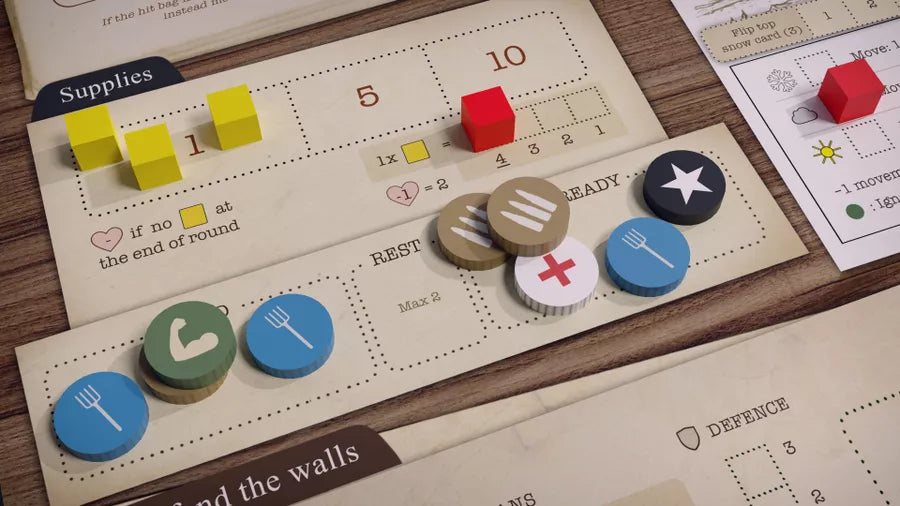Attraverso meccaniche di piazzamento lavoratori, push your luck e bag building, dovrai mantenere l’ordine, reperire rifornimenti, gestire il morale e resistere a ondate di bombardamenti e assalti.
