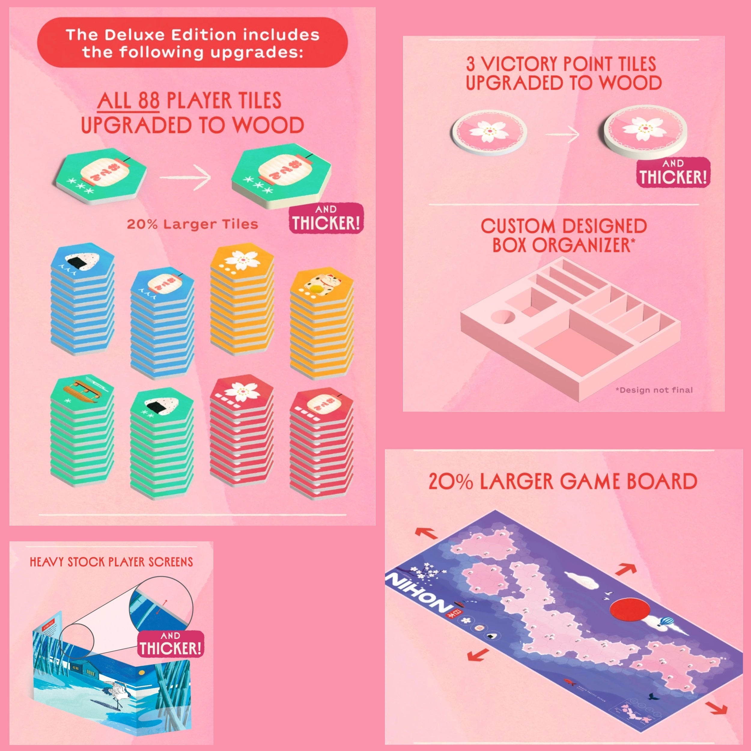 Questa edizione ci ha sorpresi per la qualità incredibile dei materiali: dalla plancia double-face alle tessere rigide elegantemente illustrate, fino ai Bento Bags che custodiscono ogni elemento come un piccolo tesoro da scoprire.
