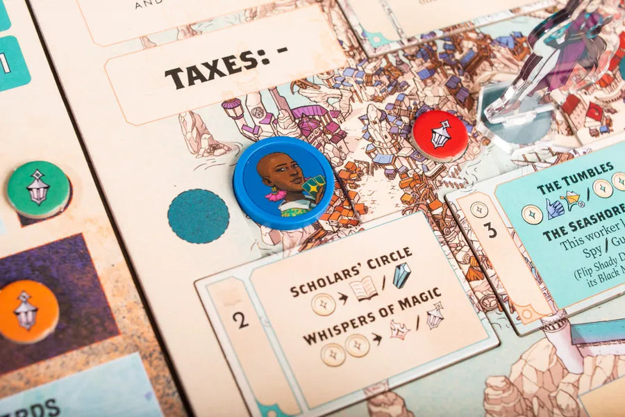 Tutto ciò che fai ha conseguenze. Ogni edificio che potenzi, ogni Seeker che mandi in missione, ogni voto che esprimi durante i Consigli cambia gli equilibri. Il cuore del gioco è una strategia a incastro tra piazzamento lavoratori, votazioni politiche e scontro ideologico. E sì, potresti anche far arrestare un altro membro del Consiglio. O venire arrestato tu.