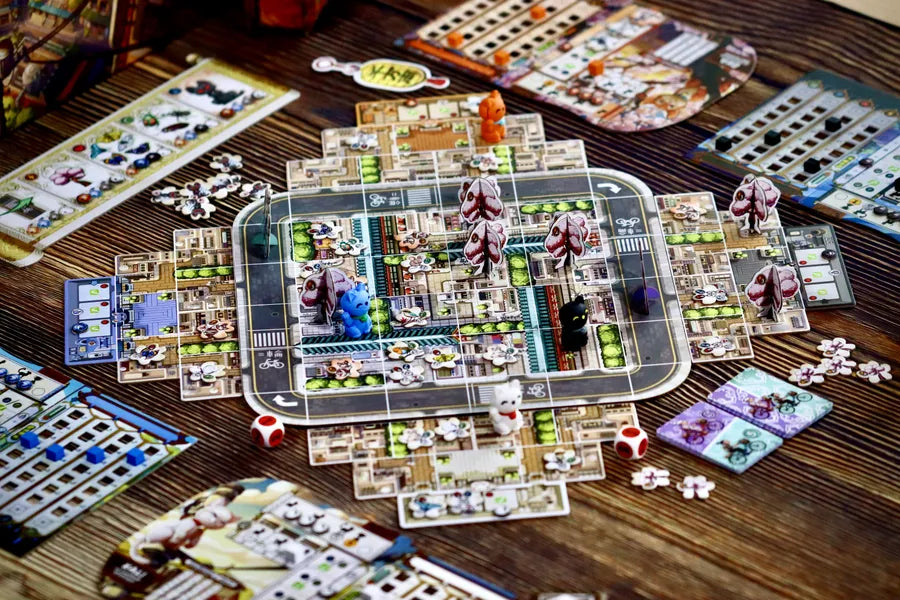 Le meccaniche sono leggere ma brillanti: lanci dadi, esplori, migliori le abilità del tuo gatto e collezioni ricordi. Ogni scenario è indipendente e racconta un frammento della vita felina — dalla caccia a un pesce ribelle fino a un duello con un rivale tra i tetti. Kyoto no Neko è un gioco da tavolo family che profuma di tè verde e avventura, pensato per chi ama la bellezza dei dettagli e la calma dei momenti sospesi.
