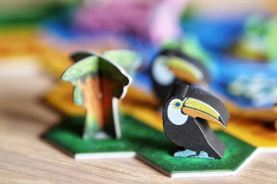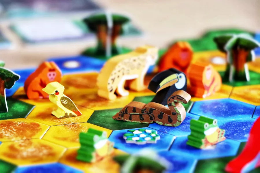 La tua missione è creare la giungla più prospera, utilizzando le risorse a disposizione per compiere azioni chiave: posizionare nuove specie, acquistare carte, ripristinare aree degradate e ottimizzare il tuo sacchetto di gettoni. Ogni scelta determina la sinergia tra flora e fauna, trasformando il tavolo di gioco in un mosaico vivo e sempre diverso. Con oltre 60.000 combinazioni possibili, nessuna partita sarà uguale alla precedente.