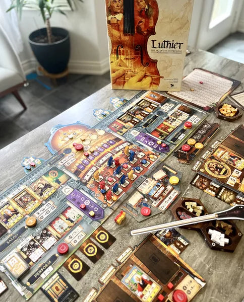 In Luthier, interpreti un costruttore di strumenti musicali che gestisce una bottega d’epoca. Il tuo obiettivo è creare violini, clavicembali e altri strumenti raffinati per nobili e mecenati, in un gioco da tavolo gestionale profondo e tematico.