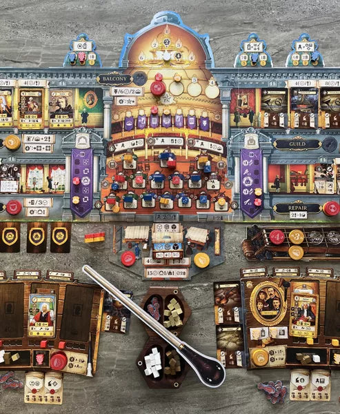 Il sistema ibrido di asta segreta + piazzamento lavoratori è un piccolo capolavoro: profondo, originale e perfettamente integrato nel tema.