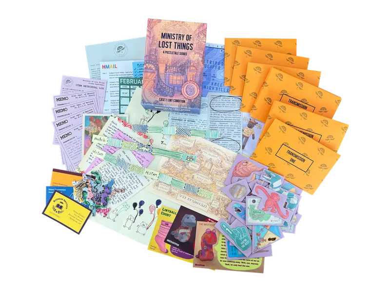 Lint Condition è il primo capitolo della serie Ministry of Lost Things, un’avventura investigativa e onirica firmata PostCurious, tra i migliori autori di giochi escape room da tavolo al mondo.