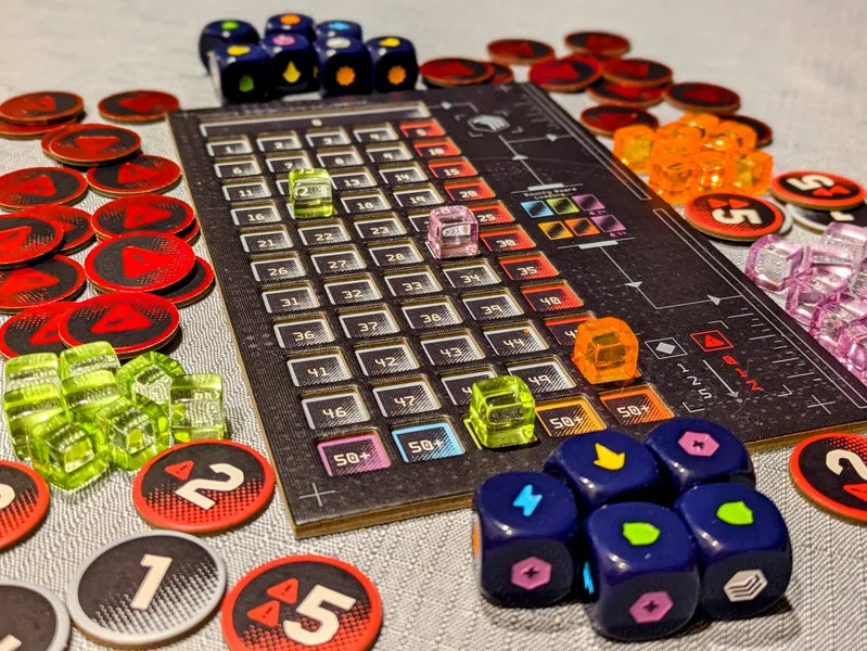 Ogni turno inizi con una decisione: fermarti o continuare. I dadi diventano carburante, il rischio diventa impulso, e la fortuna — quella vera — è ciò che ti spinge più lontano. Moonrollers è il tipo di gioco da tavolo fantascientifico che trasforma un semplice lancio in un momento da ricordare. Perfetto per serate tra amici, ideale per chi ama la tensione del rischio e la soddisfazione della vittoria conquistata col coraggio.