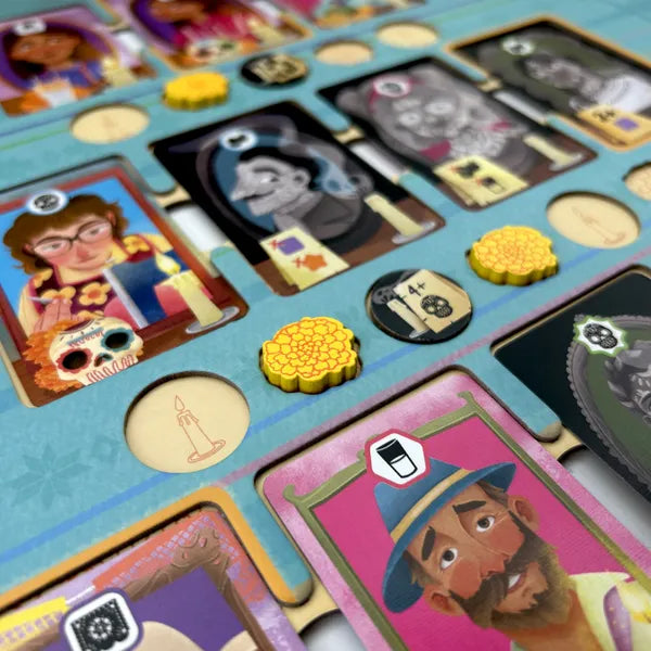 In questo gioco da tavolo ispirato alla tradizione messicana del Día de los Muertos, dovrai disporre le carte sul tuo tabellone personale rispettando i desideri dei defunti: accanto al cugino preferito, lontano dalla zuppa che odiavano.