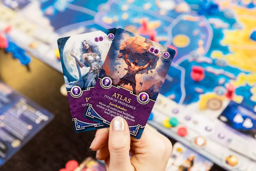 Un gioco da tavolo strategico tra mitologia, espansione e decisioni divine. Da soli o contro altri.