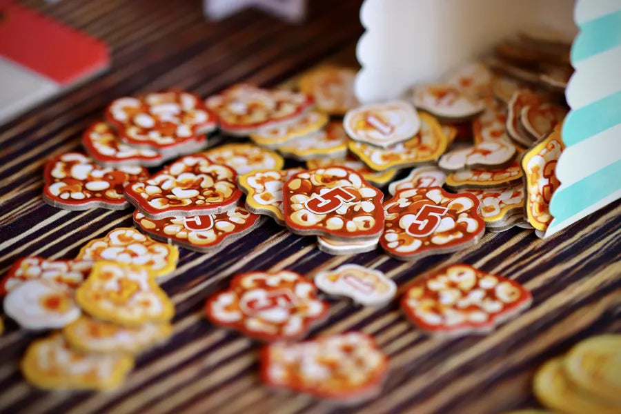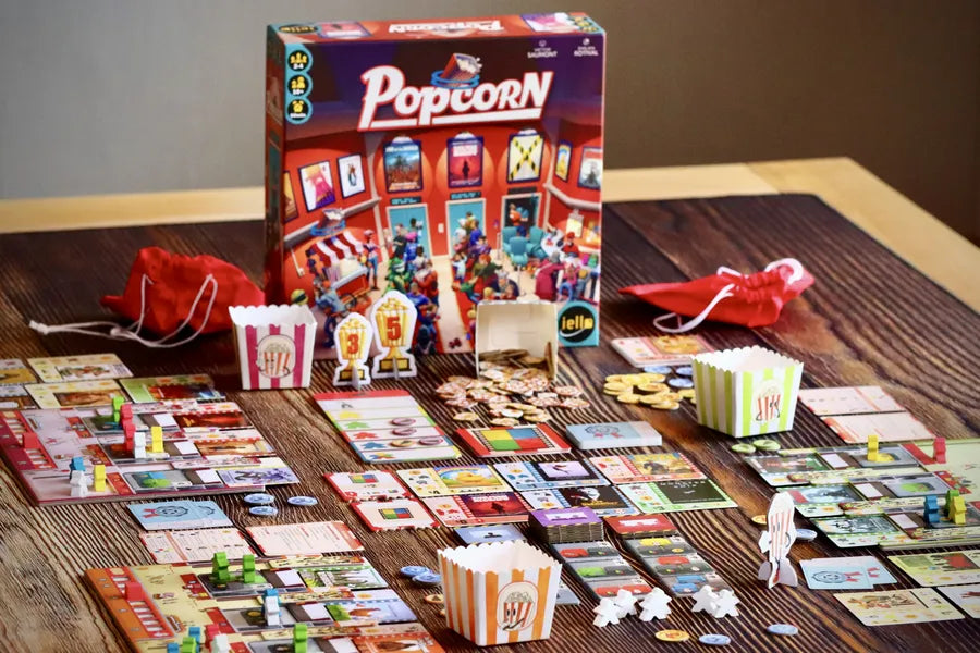 Popcorn è un family strategico che unisce scelte tattiche e ritmo cinematografico: scegli i film giusti, conquista il pubblico e riempi il tuo box di popcorn fino all’orlo. Nel cinema, come nei giochi, vince chi fa spettacolo.