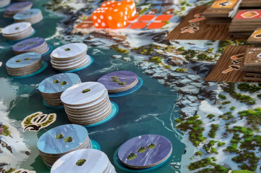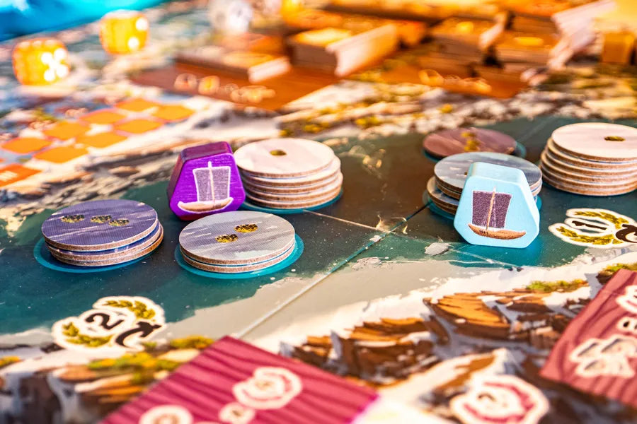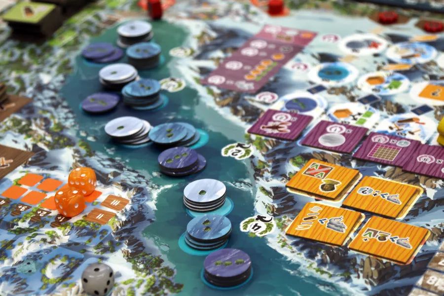 In Saltfjord (Aporta Games, ideato da Kristian Amundsen Østby ed Eilif Svensson), assumi il ruolo di leader di un villaggio di pescatori norvegese alla fine dell'Ottocento. Un gioco da tavolo strategico per 1-4 giocatori, che combina piazzamento tessere, gestione risorse e meccaniche di dadi per sviluppare edifici, commerciare e innovare. La variabilità del setup e le abilità speciali garantiscono un'elevata rigiocabilità e profondità tattica.