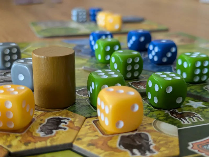 Ogni turno si basa su scelte simultanee: selezioni animali da proteggere e dadi che rappresentano cibo, il cui colore deve corrispondere all'habitat. I punti si ottengono collegando tessere dello stesso colore, piazzando i dadi giusti e attivando abilmente le torri panoramiche e le tessere “famiglia”.