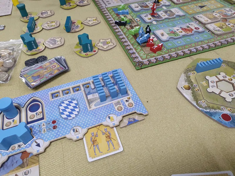 Puoi costruire torri, mura e maschi per potenziare la tua gestione: più spazio per risorse, più alleati da controllare, più flessibilità nelle azioni. Ogni miglioramento ti offre vantaggi concreti in un sistema di sviluppo modulare e profondo, tipico di un gioco da tavolo gestionale competitivo.