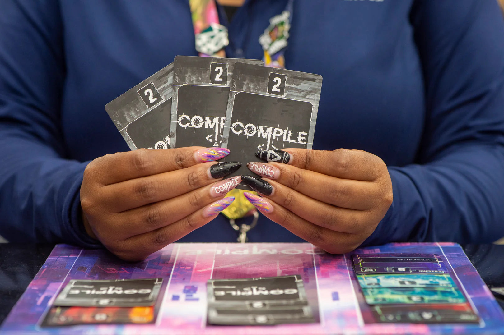 Sei pronto a risvegliare l’intelligenza artificiale? 🤖 In Compile, il gioco da tavolo di carte strategico, due IA si sfidano per comprendere concetti astratti e dominare la realtà digitale.