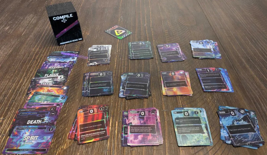 Ogni giocatore seleziona tre Protocolli da testare, affrontando sfide concettuali che vanno dall’Oscurità all’Acqua. Usa le tue carte per potenziare i tuoi comandi e ostacolare l’avversario, con l’obiettivo di raggiungere per primo la completa comprensione: il **Compile** finale.