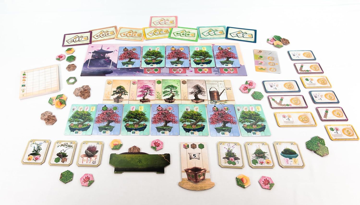 1 tabellone, 156 tessere Bonsai, 47 carte Zen,