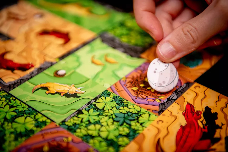 Scegliere se prendere una tessera dinosauro strategica o un obiettivo vantaggioso può determinare la vittoria. Gli obiettivi richiedono condizioni specifiche sulla tua plancia, e inseguirli può portare a mosse rischiose. È un gioco da tavolo familiare ma con decisioni da gamer.