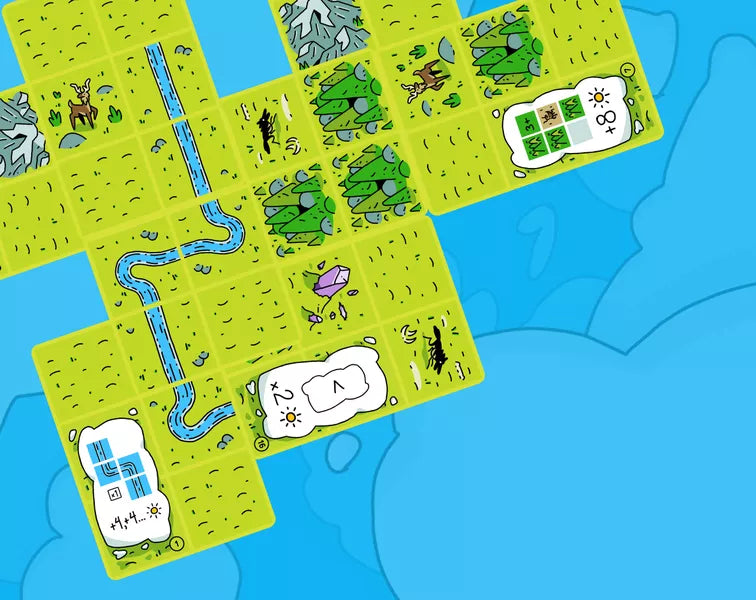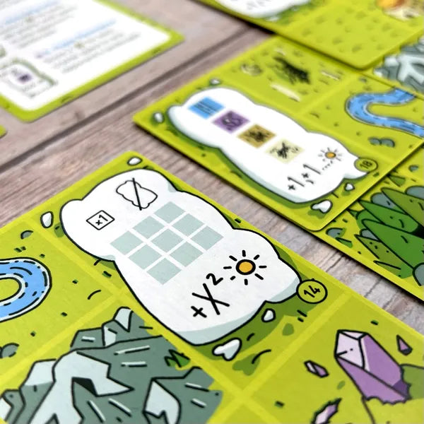 A turno, i giocatori piazzano carte che raffigurano simboli e condizioni di punteggio. Ogni scelta è un tassello che definisce non solo l’estetica, ma anche la strategia con cui costruire il proprio paesaggio.