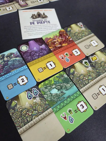 Nel cuore di Alula, quando pensavi di aver esplorato tutto… spuntano i Popoli dal Sottosuolo. Questa espansione per Faraway introduce due nuove civiltà misteriose, ciascuna con regole e condizioni di punteggio inedite: le Guide, enigmatiche e precise, e i Triclopi, creature dai tre occhi e visioni complesse.