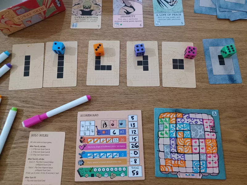 Al termine dei 12 round, si sommano i punti ottenuti per sezioni completate, obiettivi raggiunti e coerenza cromatica. Si sottraggono i punti per la sezione meno completa. Chi ha il totale più alto vince. Mind Space è un gioco da tavolo rilassante, elegante e intelligente, perfetto per chi ama i puzzle mentali e l’equilibrio interiore.