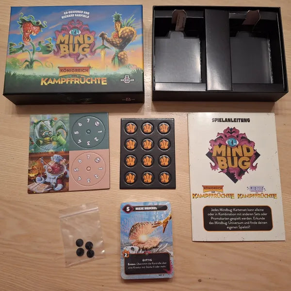 Mindbug: Tuttifrutti Regno è un gioco da tavolo di carte stand-alone, compatibile con gli altri titoli Mindbug ma perfettamente giocabile da solo.