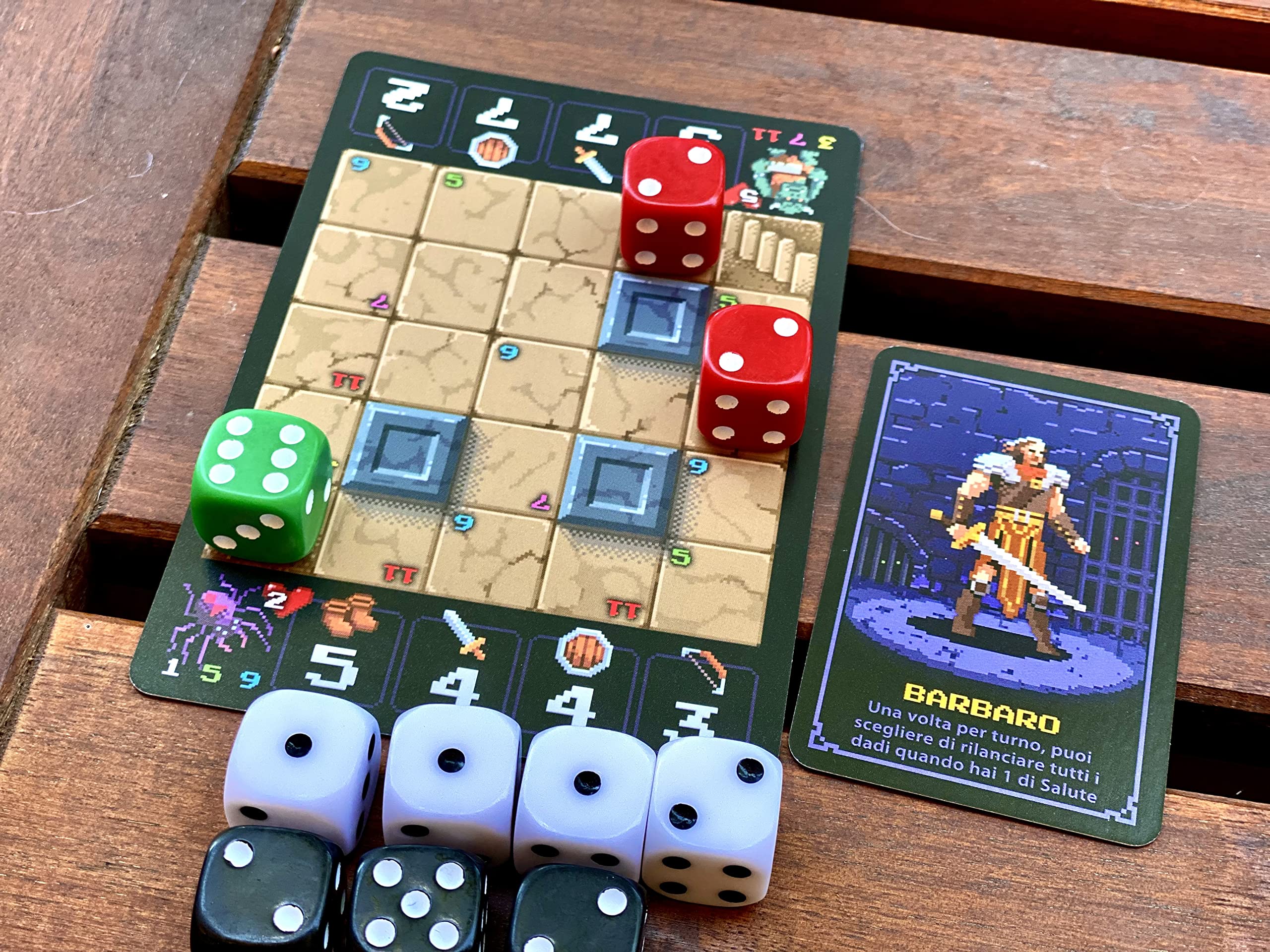 In One Card Dungeon, un gioco da tavolo solitario pubblicato da Little Rocket Games, vestirai i panni di un intrepido avventuriero pronto a esplorare 12 livelli di sfide sempre più difficili. Armato solo di una carta e una manciata di dadi, affronterai mostri letali e dovrai ottimizzare le tue risorse per sopravvivere. Ogni scelta influenzerà il destino del tuo eroe: assegnare i dadi tra attacco, difesa e velocità è fondamentale per proseguire. Un’esperienza compatta ma profonda, ideale per chi cerca strategie brillanti e rigiocabilità elevata. 🎲🗝️