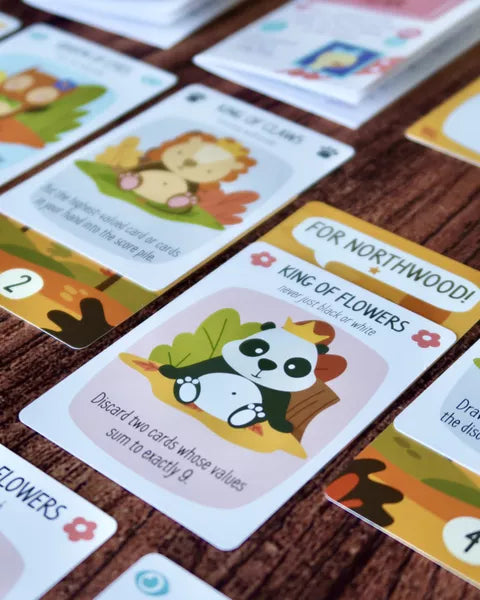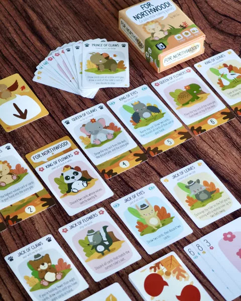 Per Northwood! è un gioco da tavolo per un giocatore che unisce gestione mano e meccaniche di trick-taking di precisione.