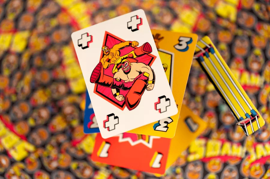 Sbam! è un gioco da tavolo per famiglie e party game in tempo reale. Semplice, veloce e perfetto per gruppi di amici o serate in famiglia. Durante ogni round, giocherai carte il più velocemente possibile per affrontare i lottatori alla tua sinistra e destra. Ma attenzione: le carte speciali e le mosse "Sbam!" possono cambiare il destino di ogni incontro!