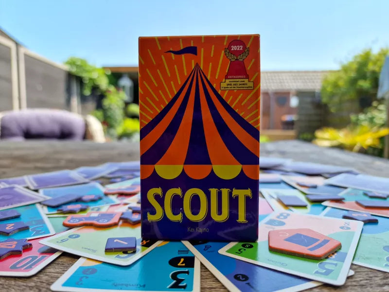 Scout è un gioco da tavolo di carte per 2-5 giocatori firmato da Kei Kajino e pubblicato da Oink Games. Combina la meccanica del ladder climbing con una gestione della mano che sfida ogni abitudine: non puoi riordinare le carte, ma solo ruotarle e aggiungerne di nuove, cercando di creare la sequenza perfetta per superare l’avversario.