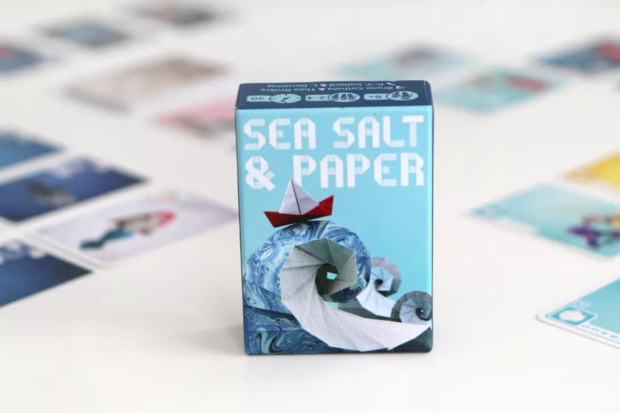 Pubblicato da Cranio Creations, Sea Salt & Paper è un gioco di carte per 2-4 giocatori, dai 8 anni in su, con partite di circa 30 minuti. Ideato da Bruno Cathala e Théo Rivière, con illustrazioni di Lucien Derainne e Pierre-Yves Gallard, il gioco ti sfida a creare combinazioni di carte per ottenere punti, utilizzando abilità speciali e decidendo il momento giusto per concludere il round. Le carte, ispirate all'arte degli origami, aggiungono un tocco estetico unico all'esperienza di gioco