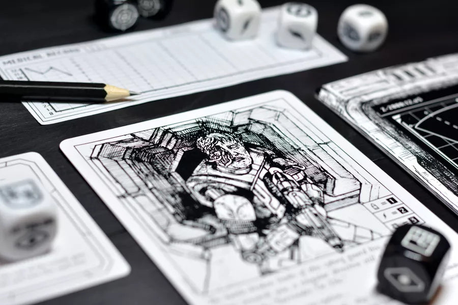 Ogni carta è un frammento di storia: un corridoio, una trappola, un incontro con cyborg, cloni o orrori meccanici. Con i tuoi compagni dovrai decidere, combattere e rischiare per raggiungere la fuga. I dadi determinano il destino, ma la vera arma è la collaborazione.