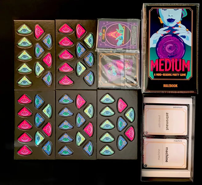 Medium è il party game che trasforma la connessione mentale in una sfida da tavolo. Due carte, due parole… e poi il silenzio carico di tensione: riuscirai a pronunciare la stessa parola nello stesso istante del tuo compagno? È un gioco di intuizione, risate e incredibili coincidenze che esplode quando i pensieri si allineano.