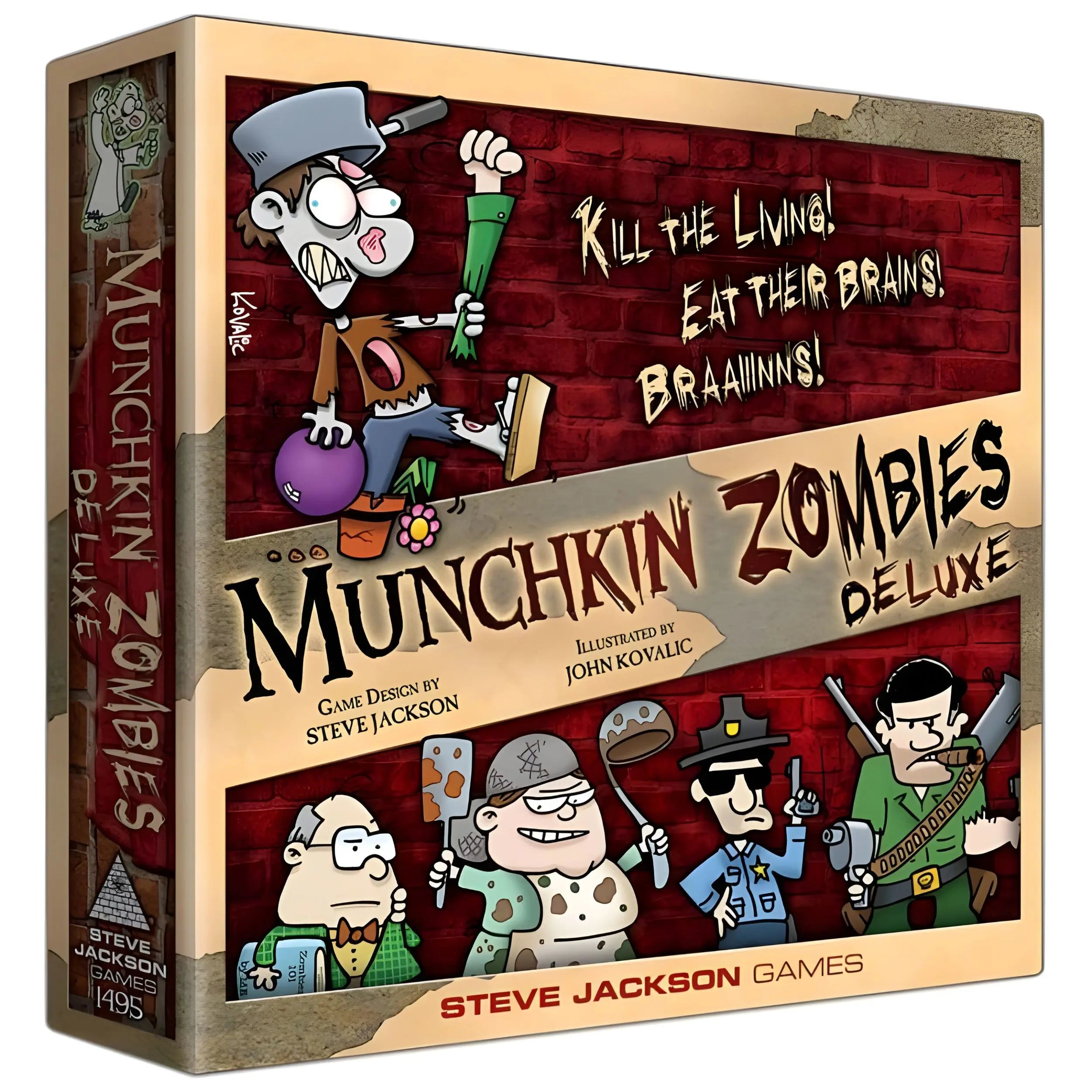 Munchkin Zombies Deluxe è un gioco da tavolo comico e competitivo per 3–6 giocatori, con partite da circa 90 minuti, ambientato in un mondo dove i morti viventi hanno preso il controllo. Creato da Steve Jackson e illustrato con lo stile folle di Greg Hyland e Alex Fernandez, è uno spin-off della saga Munchkin con un ribaltamento totale: questa volta i mostri sei tu.