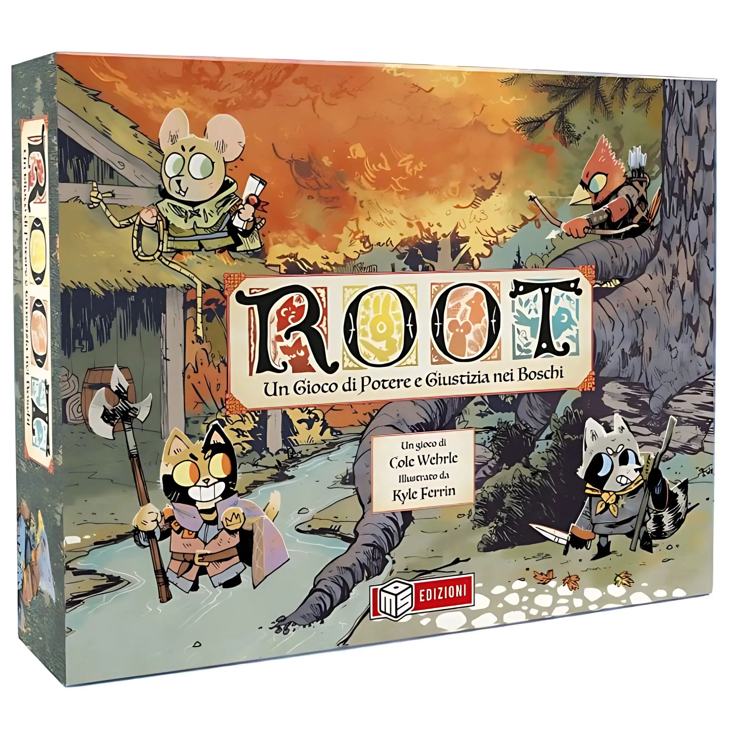 Root è un acclamato gioco da tavolo strategico asimmetrico per 2-4 giocatori (fino a 6 con espansioni), ambientato in una foresta fantasy abitata da fazioni animali in lotta per il controllo.
