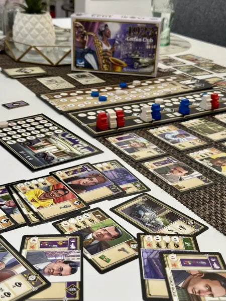 1923: Cotton Club is a management board game for 2–4 players , set during the American Prohibition era. Players compete to attract the most influential celebrities by running illegal nightclubs amidst jazz, bootlegging, and connections to organized crime.